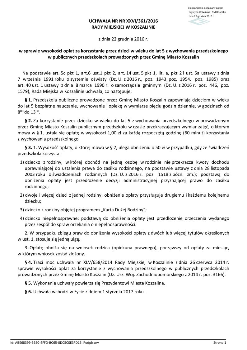 Wniosek o zwolnienie z opłat za korzystanie z wychowania przedszkolnego